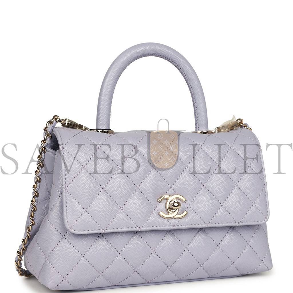 • CHANEL SMALL COCO HANDLE FLAP BAG LIGHT PURPLE CAVIAR LIGHT GOLD HARDWARE (23*15*10cm)