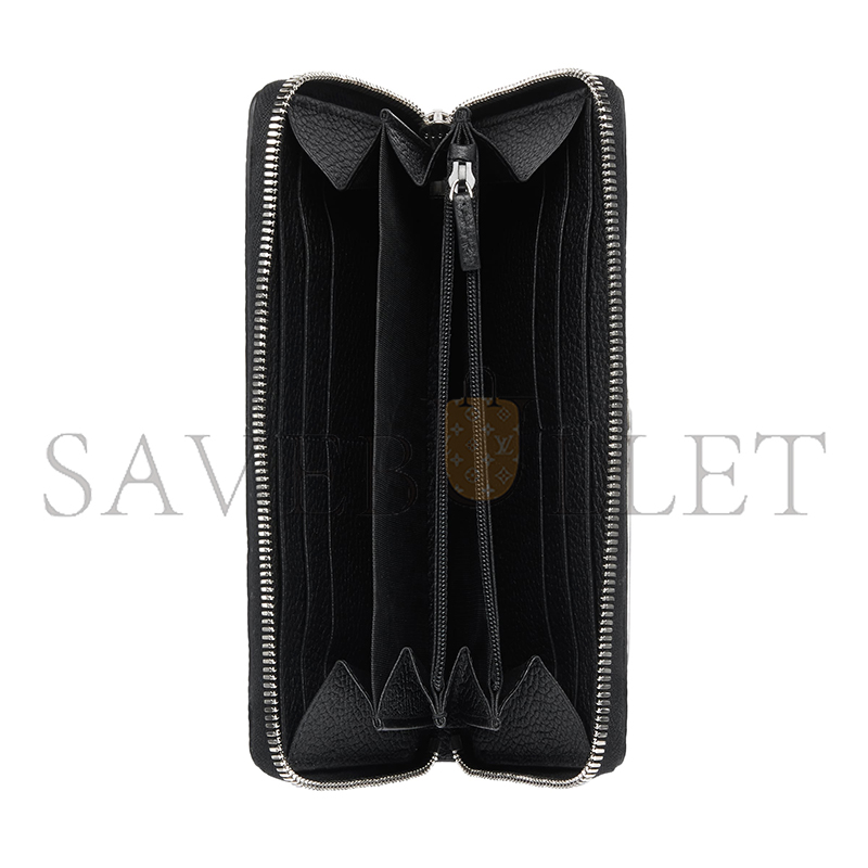 Inside: 12 credit card slots, 3 bill compartments and 1 zipper coin pocket