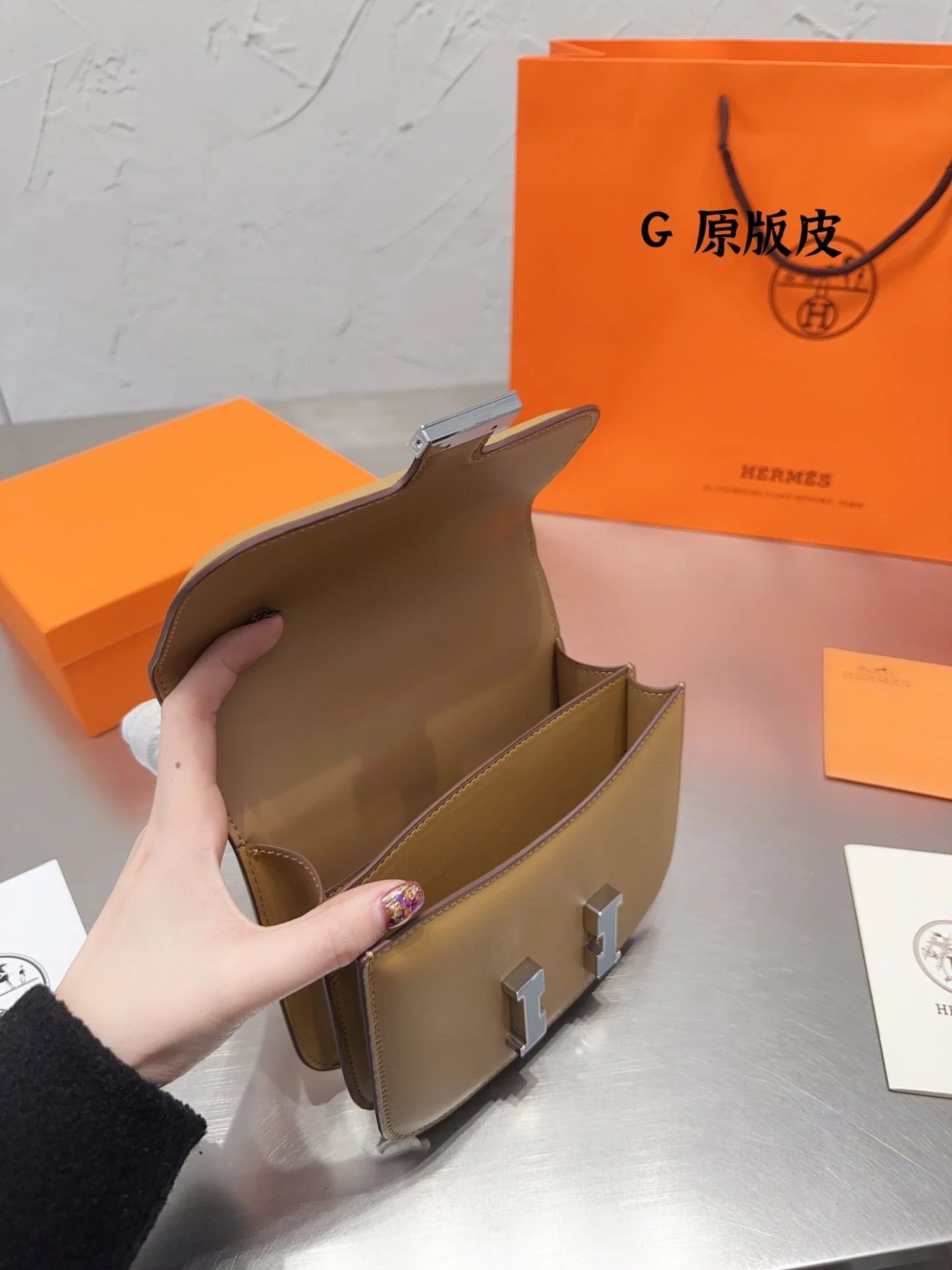 Original single Hermes Constance bag Swift leather It’s made of calfskin. Leather features not small cowhide (soft cowhide), very soft, fine and smooth texture feel very good, not easy to shape! High chromaticity, more color choices. Easy to scratch, easy to repair! 19cm full package
