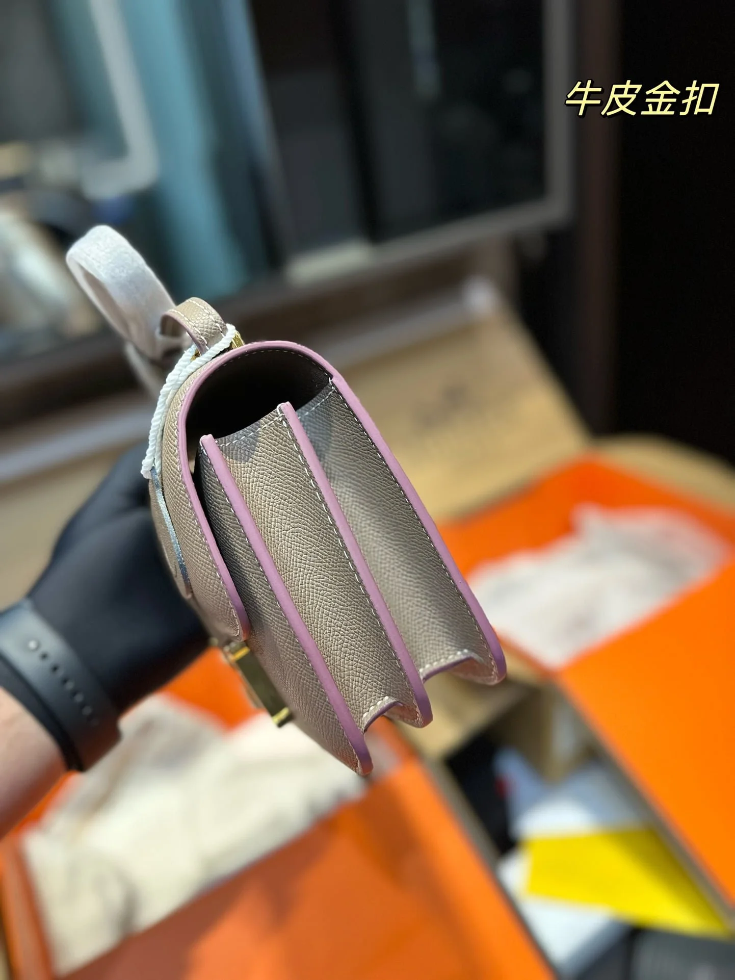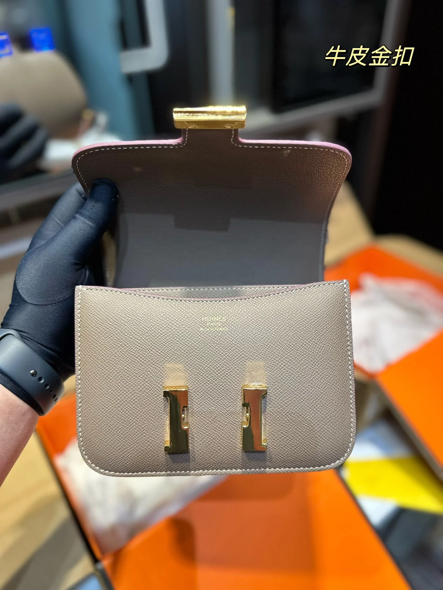 Original single Hermes Constance bag Swift leather It’s made of calfskin. Leather features not small cowhide (soft cowhide), very soft, fine and smooth texture feel very good, not easy to shape! High chromaticity, more color choices. Easy to scratch, easy to repair! 23*17cm/19*15cm full package