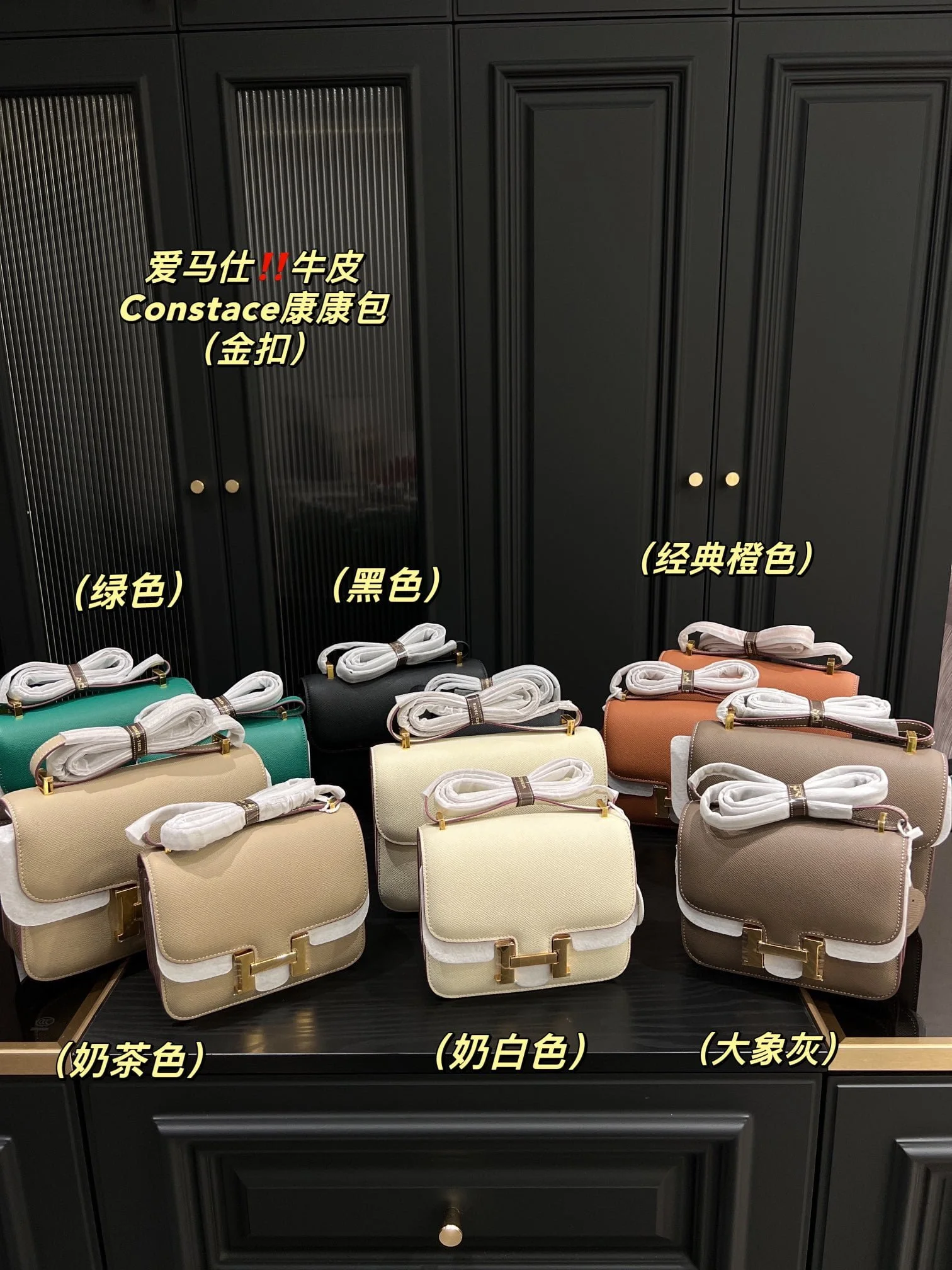 Original single Hermes Constance bag Swift leather It’s made of calfskin. Leather features not small cowhide (soft cowhide), very soft, fine and smooth texture feel very good, not easy to shape! High chromaticity, more color choices. Easy to scratch, easy to repair! 23cm/19cm full package