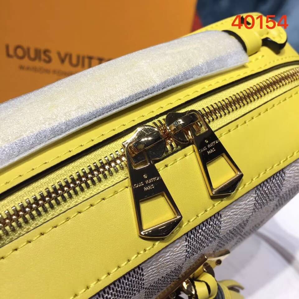 Damier Azur canvas pairs up with fresh pastel leather trim for a summery version of the most-wanted Saintonge handbag. The perfect partner for any beach-to-city look, this limited edition captures the spirit of the season with its fresh, playful vibe. The trendy top handle and long strap offer plenty of carry options for different attitudes.