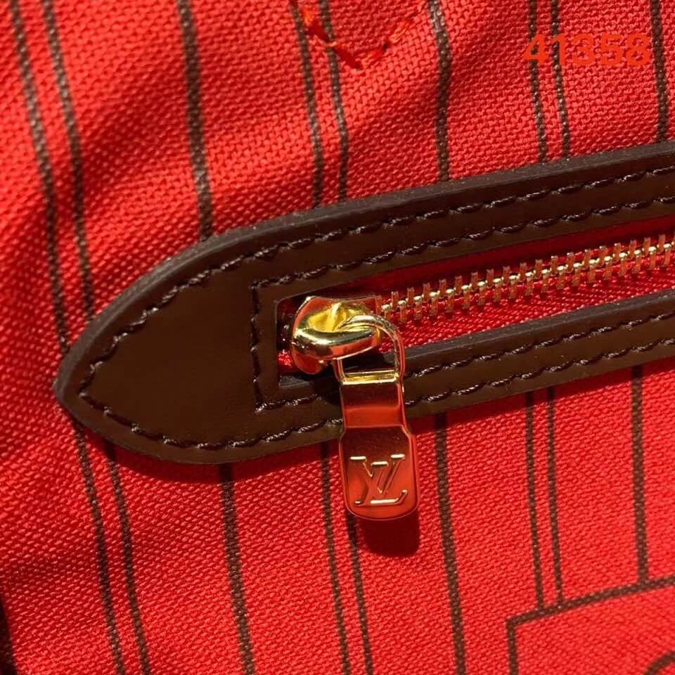 Legendary Neverfull: always exactly what you need it to be. Capacious but not bulky, structured yet supple, at home on the town or in the country. Cinch the side laces, and voilà! it’s a sleek city bag. Loosen them and you have a chic, practical tote. The slim leather handles fit over the shoulder or on the arm. Shown here in Damier Ebène canvas.