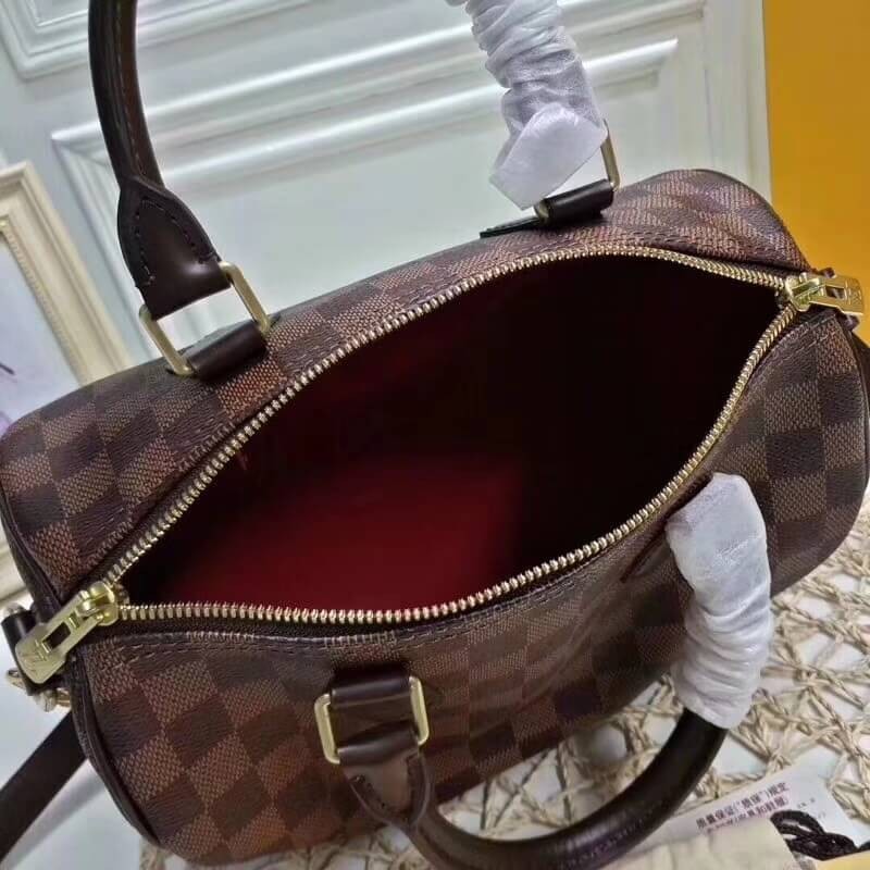 The Speedy Bandoulière 25 in iconic Damier Ebène canvas encapsulates timeless Louis Vuitton glamour. It looks effortlessly elegant, whether carried by hand, on the shoulder, or worn across the body.