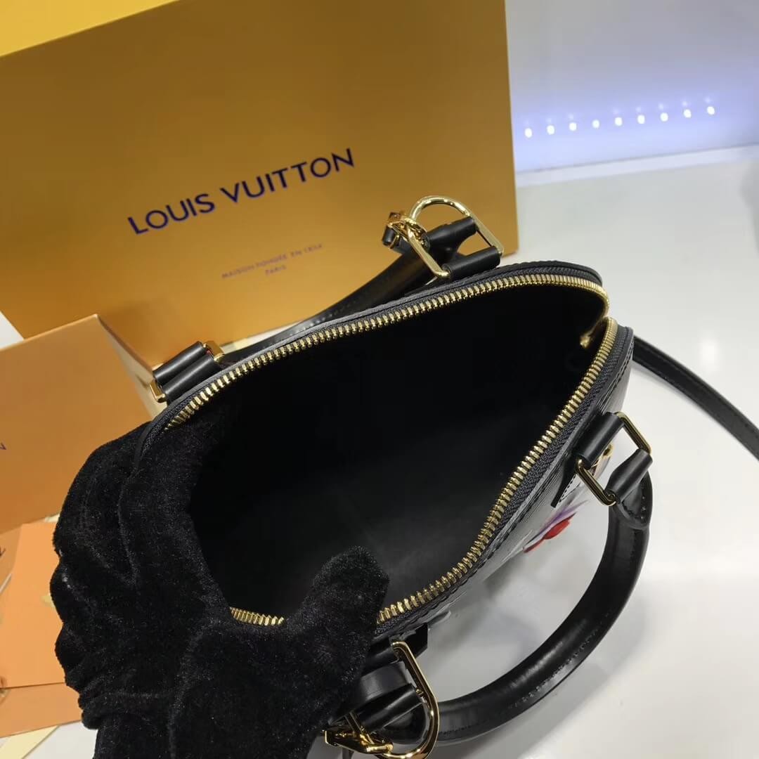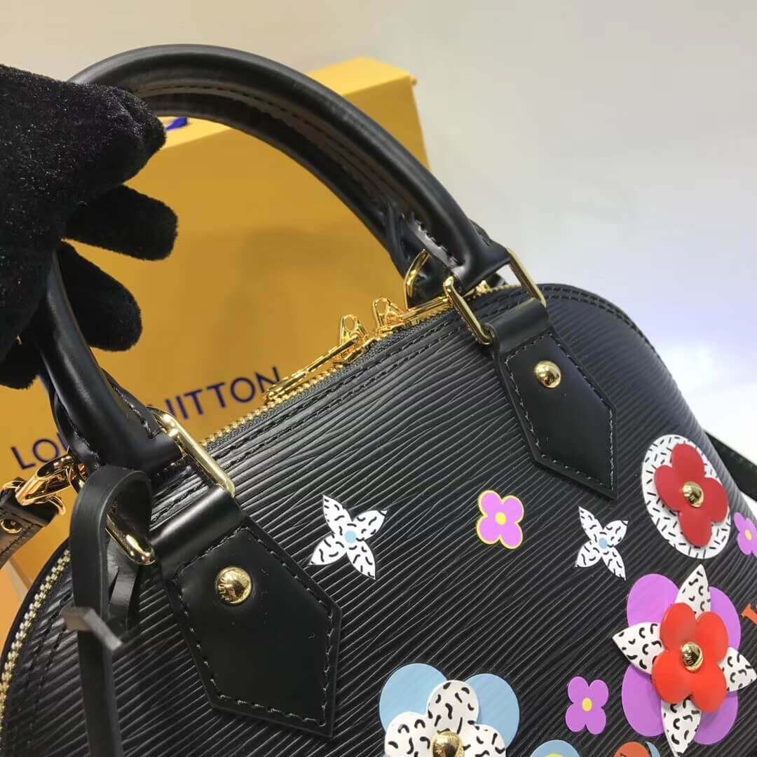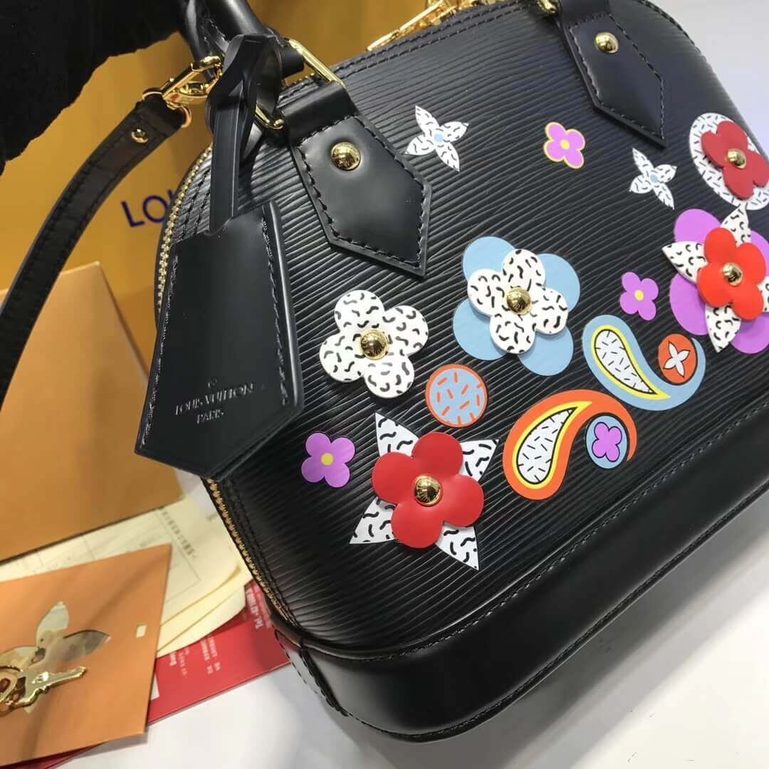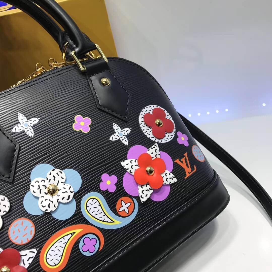 This Alma BB blends vibrant colors with crafted leather patches work to bring a fresh feminine interpretation of the emblematic Louis Vuitton Monogram flower.