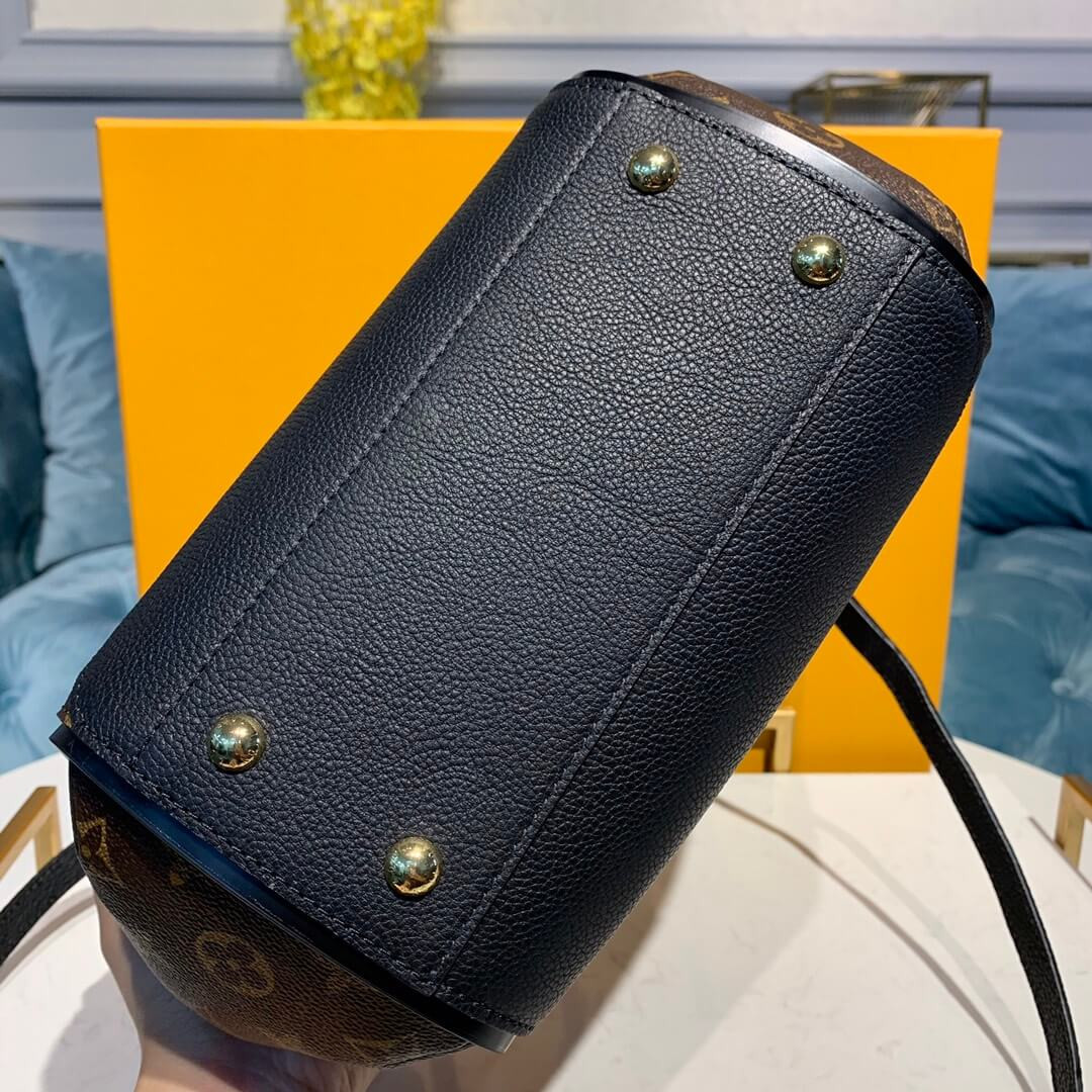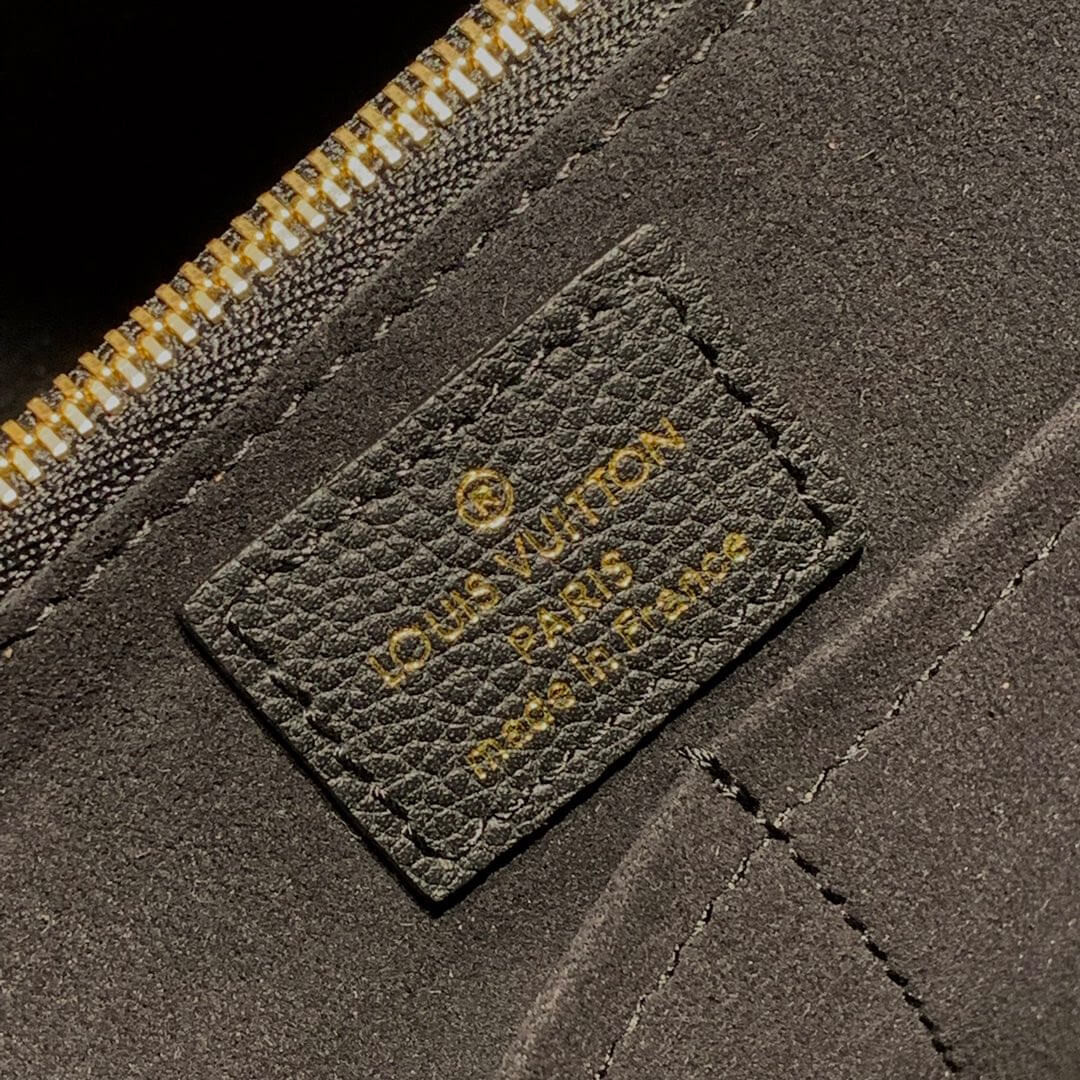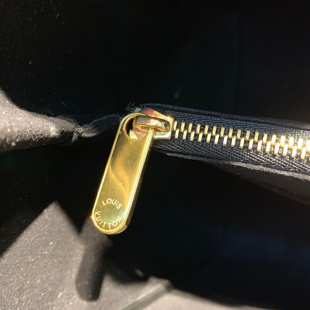 This tote is crafted of Louis Vuitton monogram canvas with an overlapping layer of rich calfskin leather in red. The shoulder bag features rolled leather top handles, an optional red shoulder strap and a polished brass Louis Vuitton "V" embellishment reminiscent of the Japanese Kimono robes. The top is open to a partitioned red suede interior with a central zippered compartment and pockets.