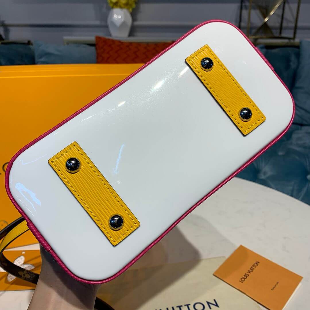The Alma BB handbag traces its pedigree to the Art Deco original, introduced in 1934. This model is crafted from emblematic Epi leather, a deep-dyed, textured cowhide exclusive to the House. Its unmistakable shape and signature details – padlock, hand-stitched Toron handles, key bell – make this compact bag a timeless classic. Fitted with a removable strap for cross-body wear.