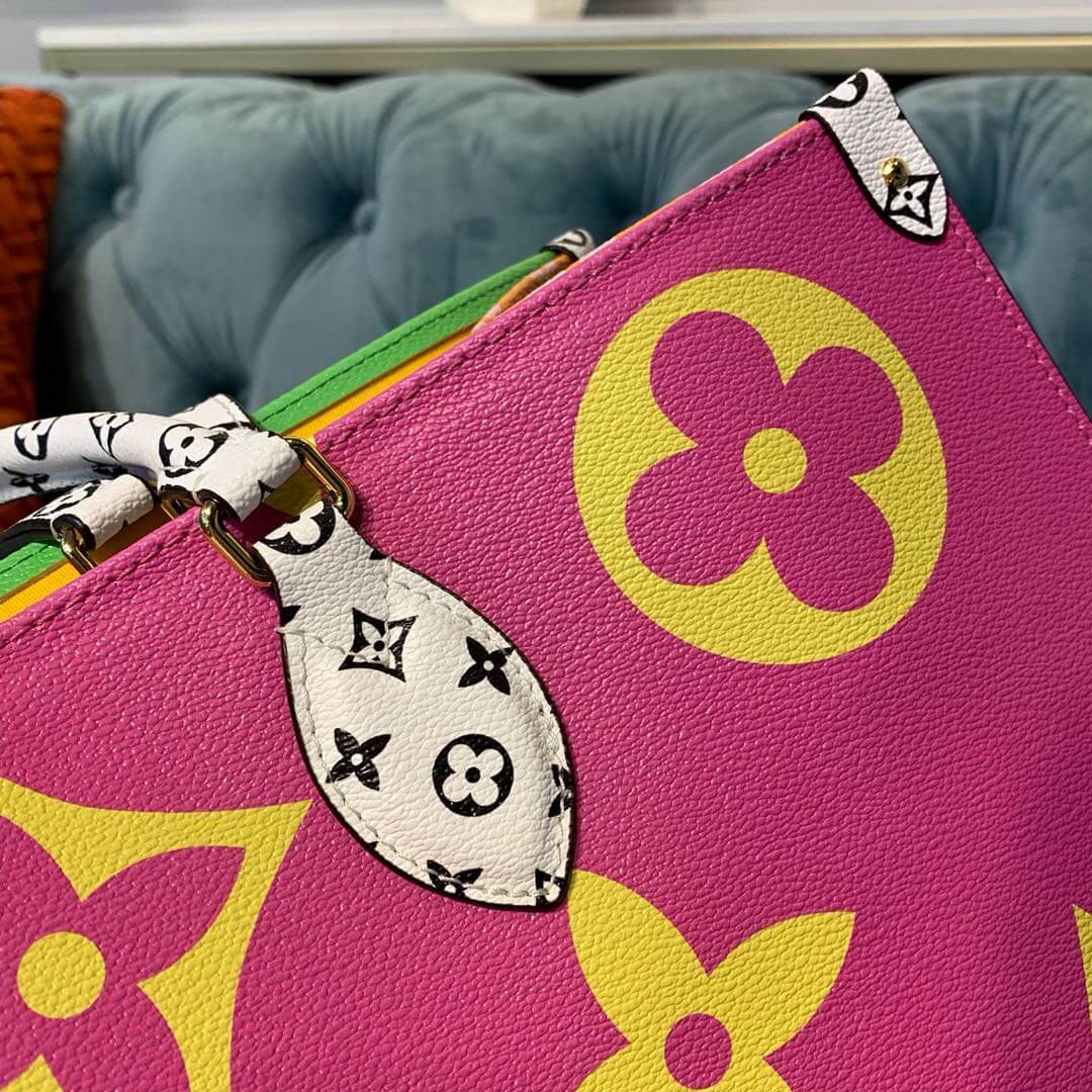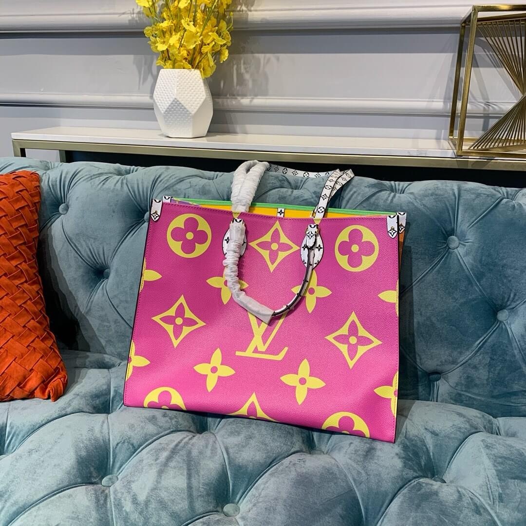 The aptly named Onthego tote bag goes shopping, to work or off for the weekend. With its ample capacity and oversized Monogram motif (contrasted with Mini Monogram trim) this modern carryall makes a punchy fashion statement. Articulated Toron handles and two shoulder straps ensure a comfortable carry, all day long.
