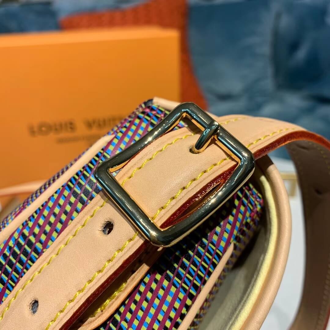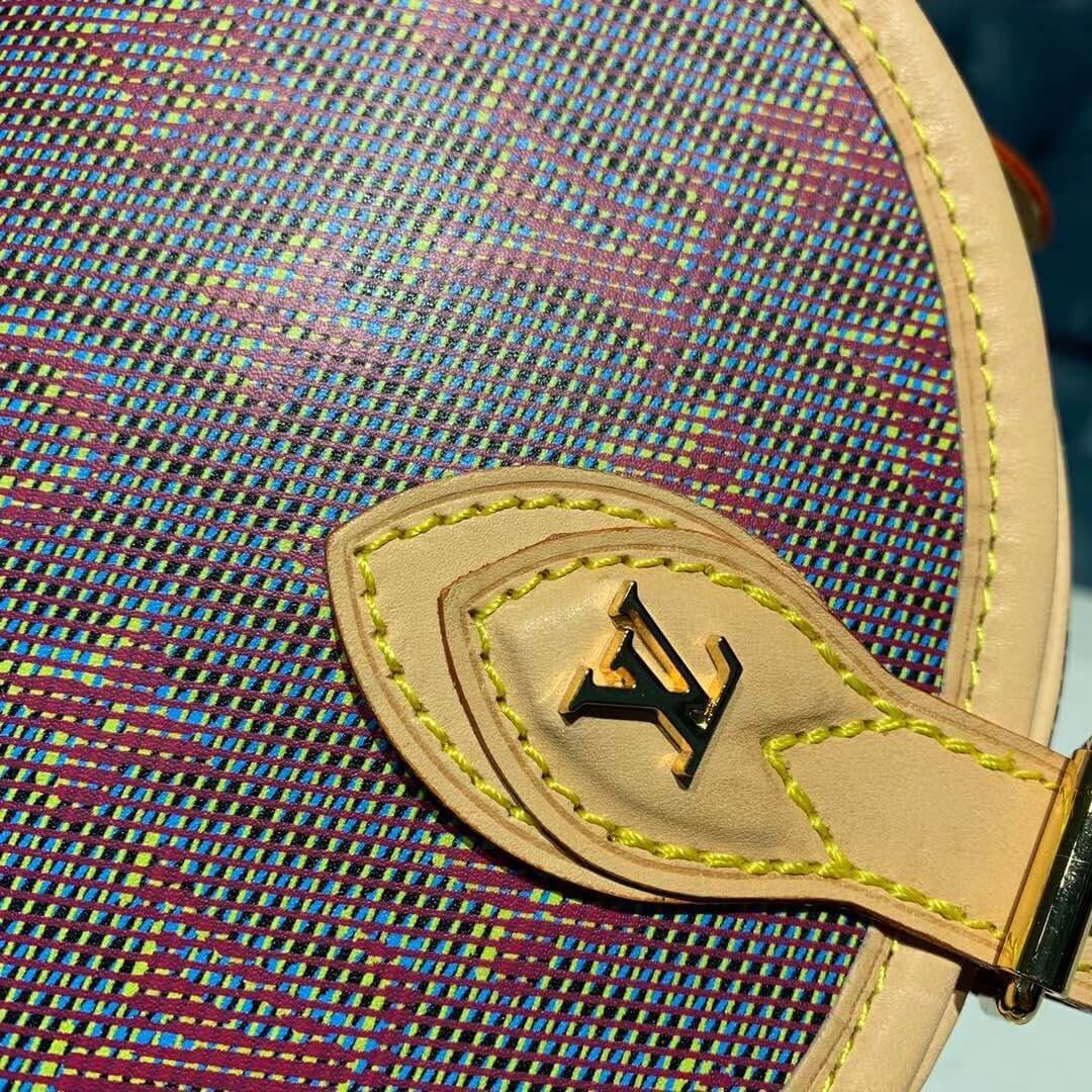 Fashioned from calf leather with a bright pink Monogram LV Pop print, the rounded and compact Tambourin handbag is the perfect everyday bag. The colorful mix of the iconic Monogram and Damier patterns brings an eye-catching aspect to this very functional handbag.