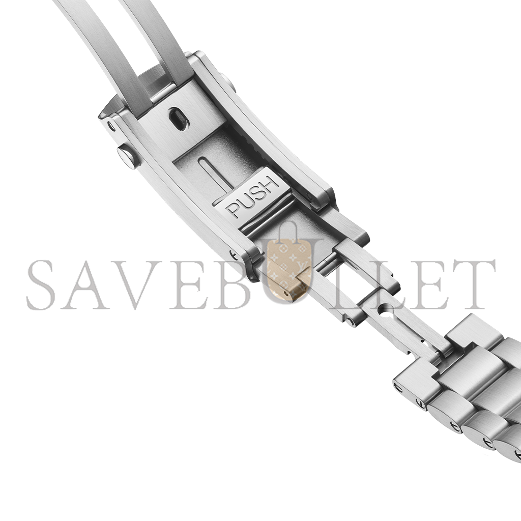 Other features include an alveol screw-in caseback and a stainless steel bracelet with patented extendable foldover clasp.