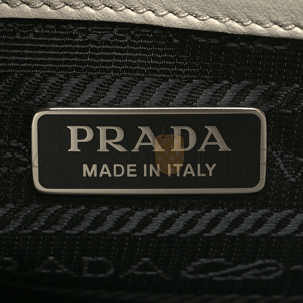 This is an authentic PRADA Calfskin Triangle Tote Bag in White. This chic tote is crafted of fine glazed leather in white with a large Prada triangle logo at the front. The bag features leather top handles and an adjustable leather shoulder strap. The top opens to a black nylon jacquard interior with a zipper pocket.