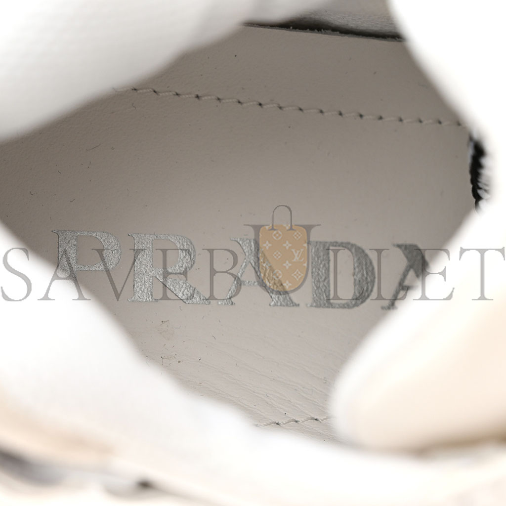 This is an authentic pair of PRADA Nylon Nevada Calfskin Mens Pegassus Sneakers size 5 in White. These shoes are crafted of white nylon fabric with leather trim. The shoes feature white and black laces and white rubber soles.