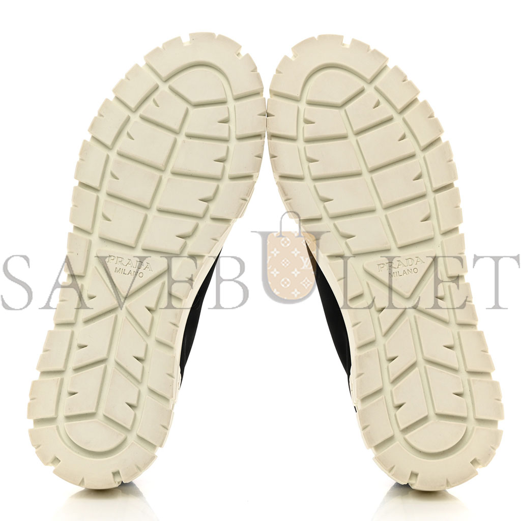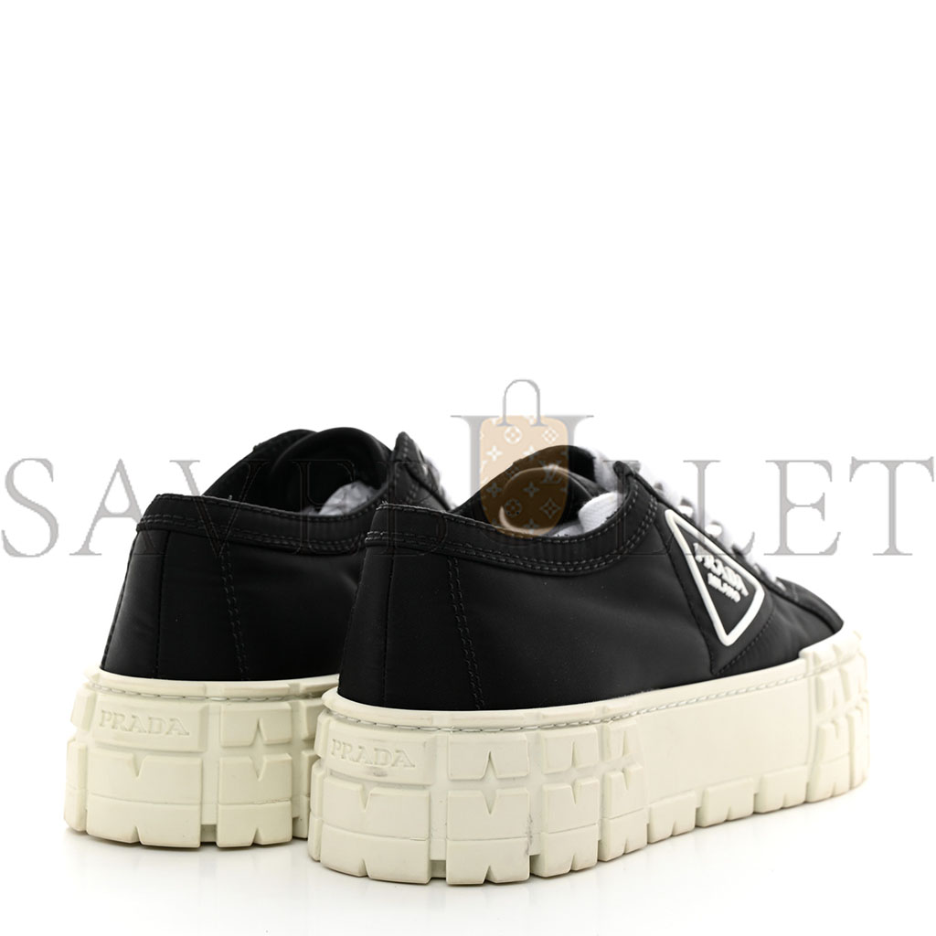 This is an authentic pair of PRADA Re-Nylon Gabardine Triangle Logo Double Wheel 50mm Sneakers size 38 in Black. These sneakers are crafted of black nylon and feature the Prada logo on the sides in white.