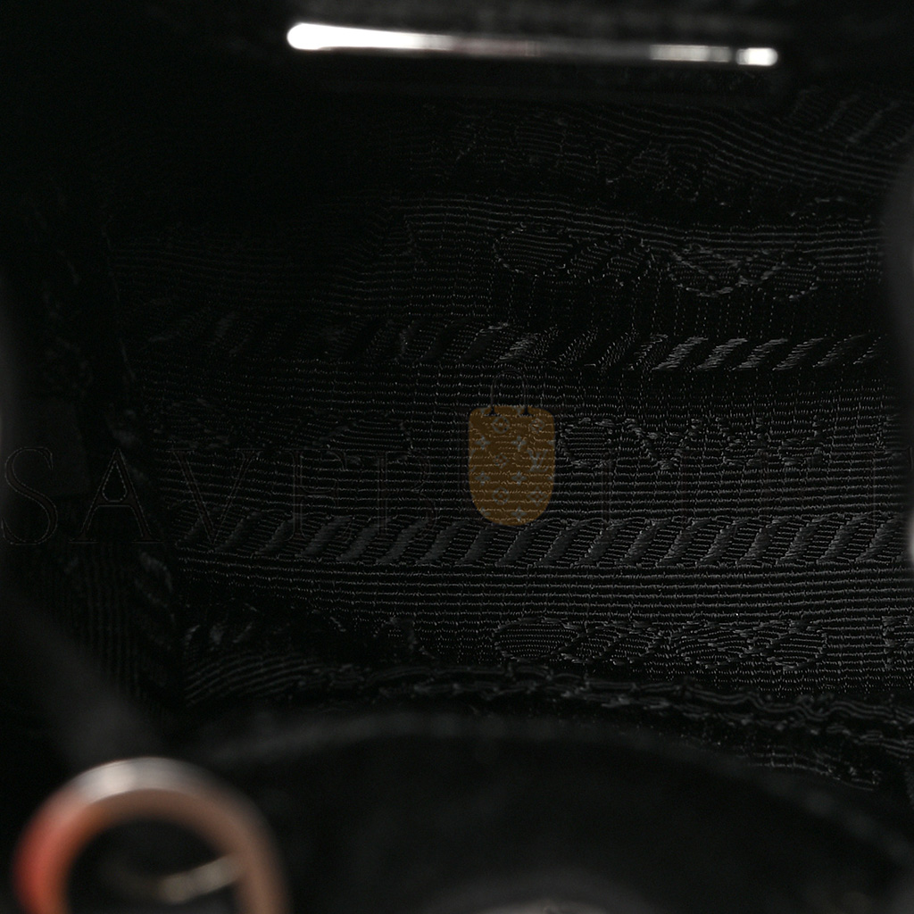 This is an authentic PRADA Satin Crystal Drawstring Mini Pouch in Black. This small handbag is crafted of crystal-embellished satin on one side and metallic leather on the other. The bag features a chain strap, and silver hardware. The top zipper opens to a black interior.