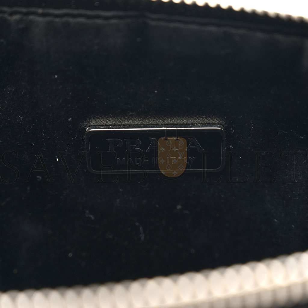 This is an authentic PRADA Satin Crystal Triangle Pouch Cristal. This Prada handbag is crafted of crystal-embellished and black satin. The bag features a black leather shoulder strap and silver hardware. The top zipper opens to a black satin interior.