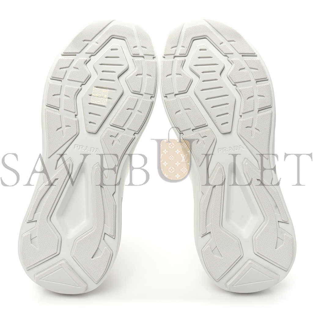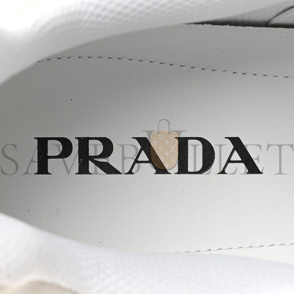 This is an authentic pair of PRADA Spazzolato Rois Bike Fabric Mens Sneakers 10 White. These stylish fisherman-style sandals are crafted of white calfskin with a 2.25-inch heel, 1.75-inch platform