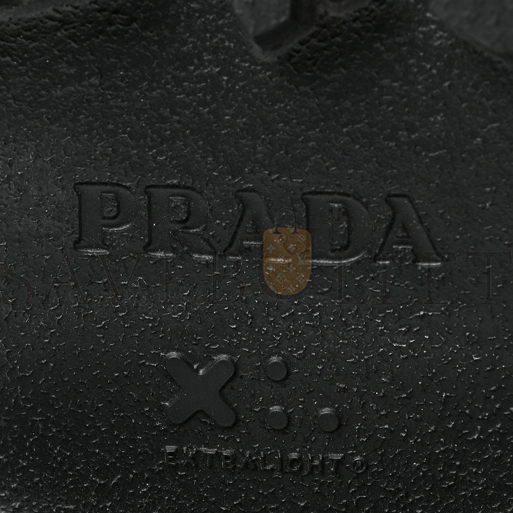 This is an authentic pair of PRADA Spazzolato Rois Re-Nylon Metal Triangle Logo Monolith Pouch Pocket 55mm Boots size 37 in Black. These chic platforms are crafted of calfskin leather and recycled nylon in black. They feature black stacked rubber platform soles, crossover straps, and removable pouches.