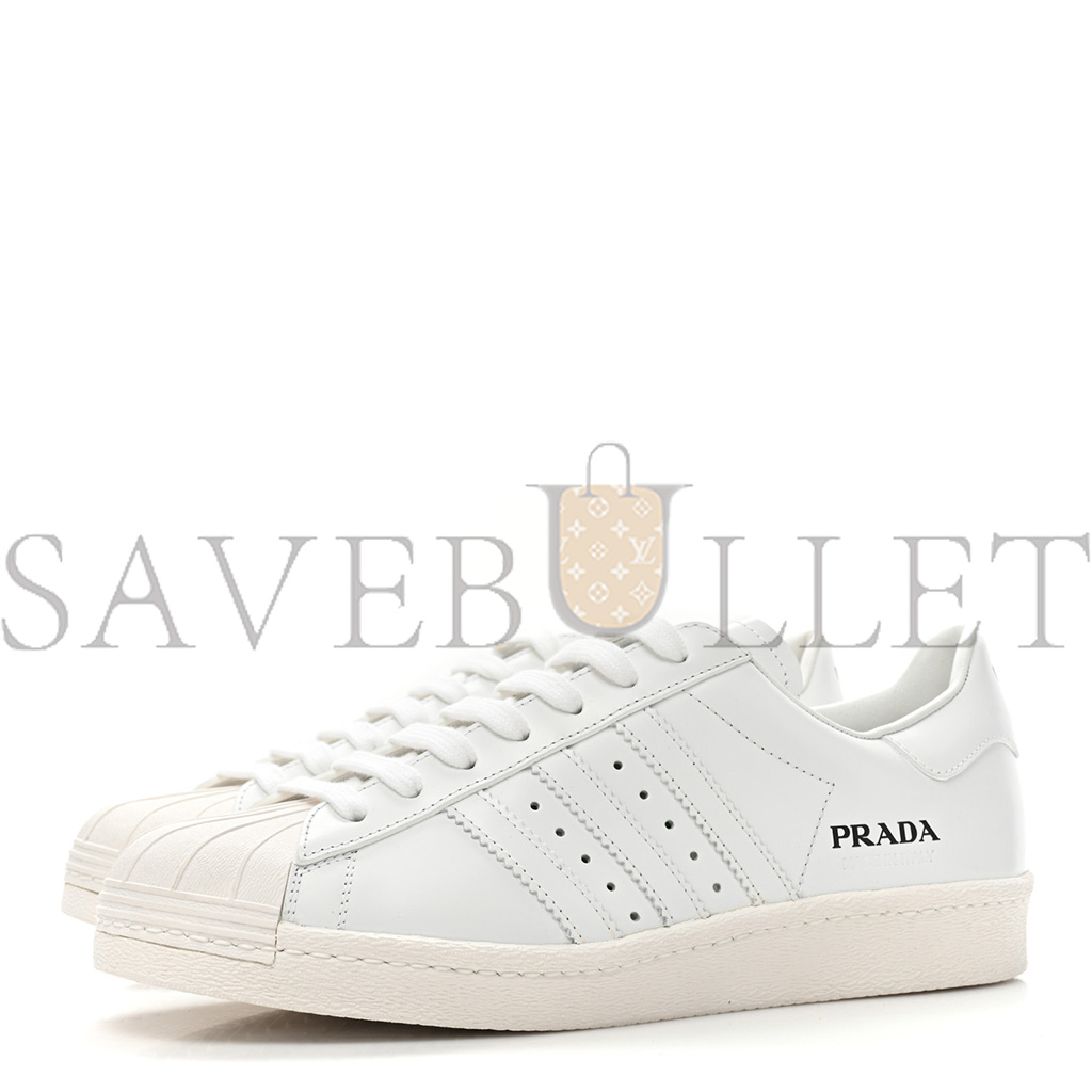 This is an authentic pair of PRADA X ADIDAS Calfskin Mens Superstar 450 Low Top Sneakers size 8 in White. These stylish sneakers are crafted in white.