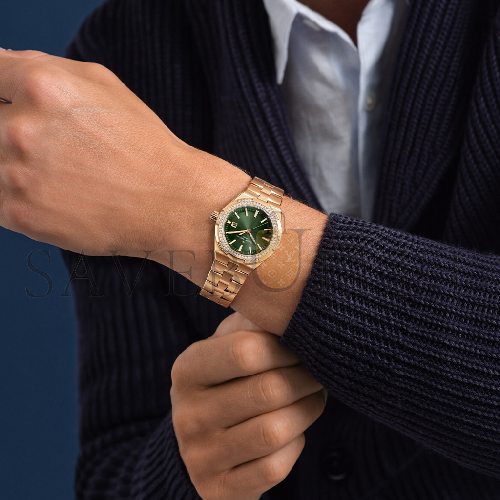 Elegant and relaxed, this 18K 5N pink gold watch is distinguished by its bezel, which recalls the Maltese cross, and is set with 90 brilliant-cut diamonds. Its openworked caseback reveals an oscillating weight in 22K 3N yellow gold featuring decoration inspired by the wind rose, a tribute to the spirit of travel.�