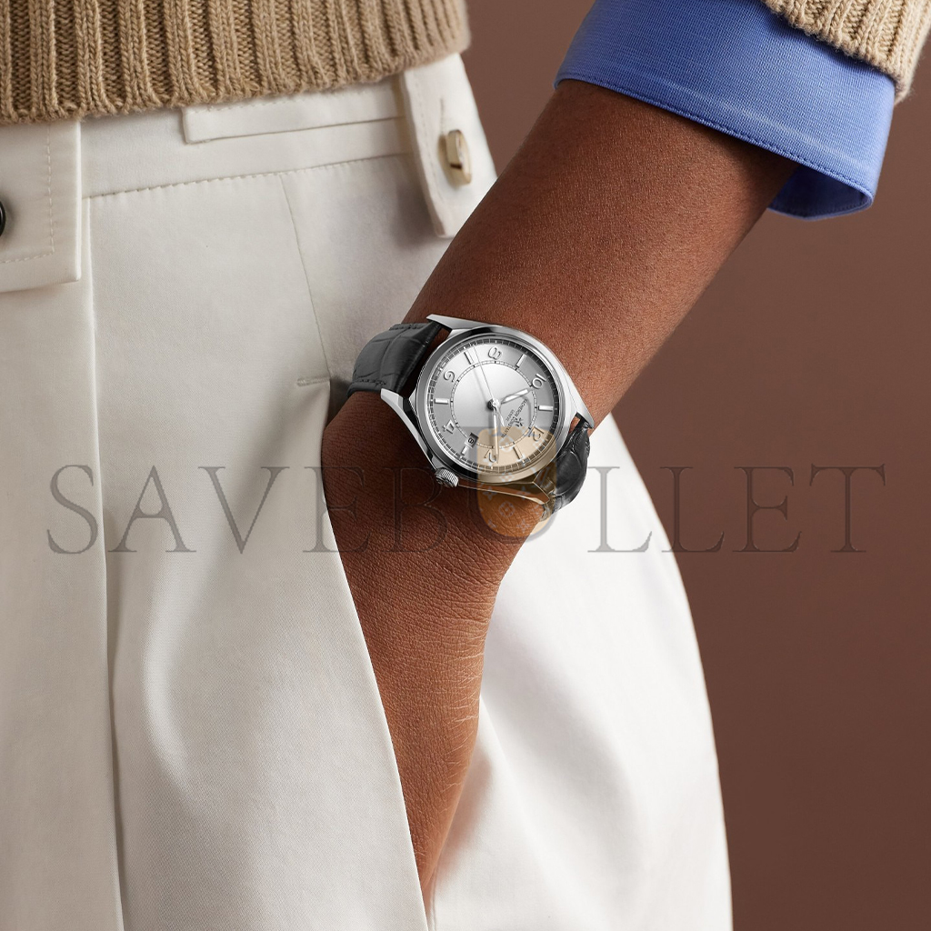 With a retro-contemporary style, this watch is inspired by a model dating back to 1956 �� reference 6073. Its openworked caseback reveals an elevated oscillating weight in 22K gold, inspired by the Maltese cross, as well as the exceptional finish of the automatic movement.