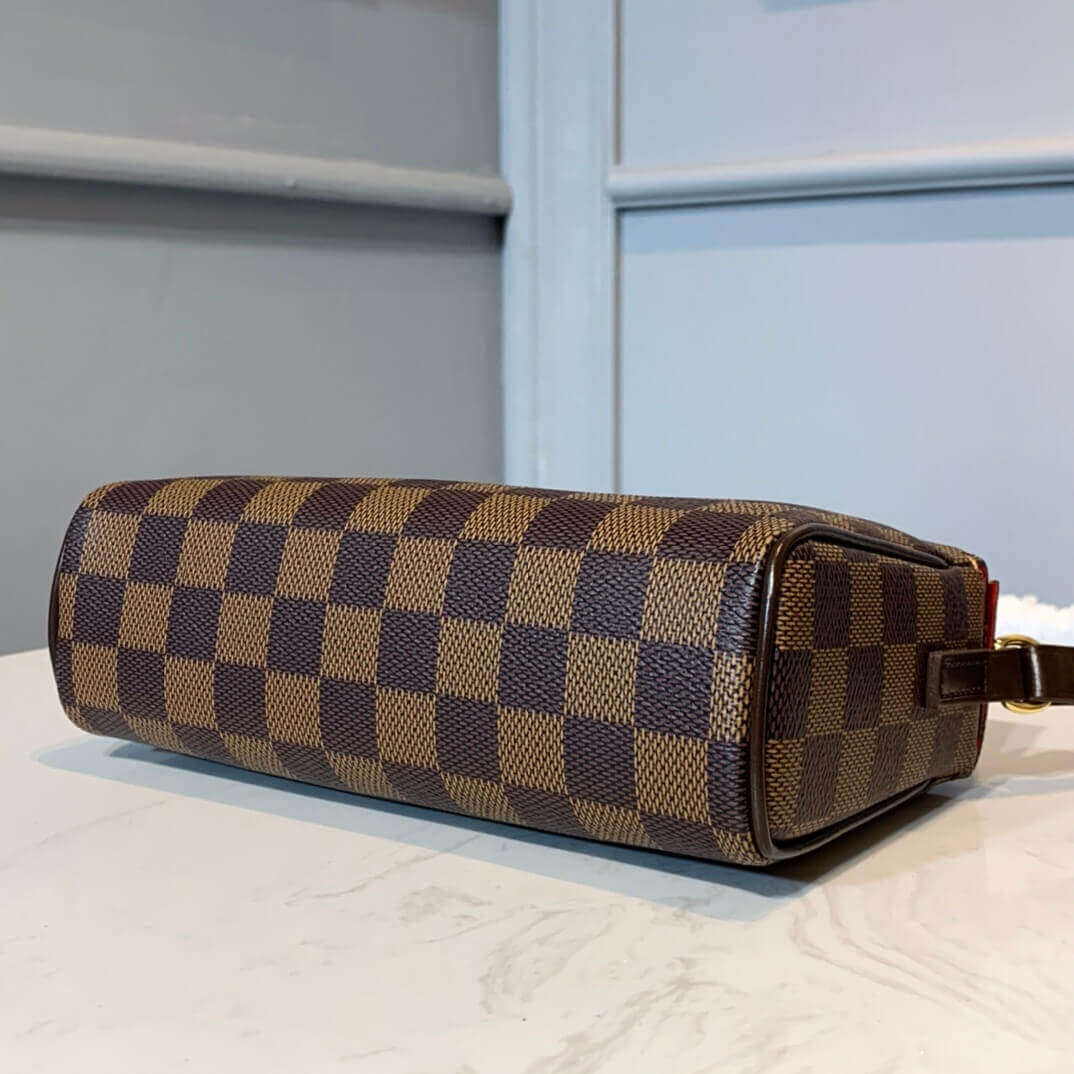 This brilliant bag has a beautiful compact design with fold-over top flap design and magnetic snap button closure. The shoulder strap is crafted of beautiful natural vachetta leather. The interior is lined in a beautiful red suede-like material and features an additional small sleeve pocket to keep you organized.