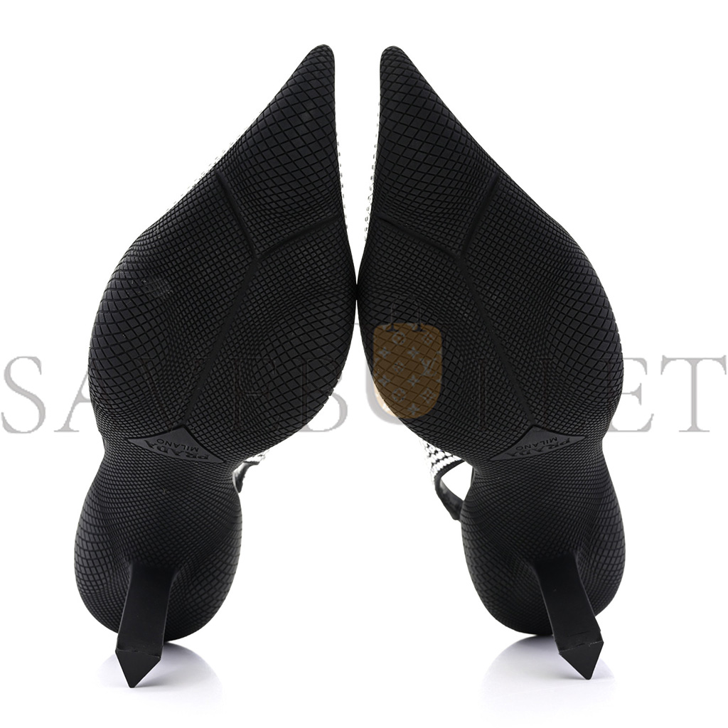 This is an authentic pair of PRADA Satin Crystal Logo 90mm Slingback Pumps size 36.5 in Cristal. These sling backs are crafted of crystal-embellished black fabric with a 2-inch rubber heel and sole.